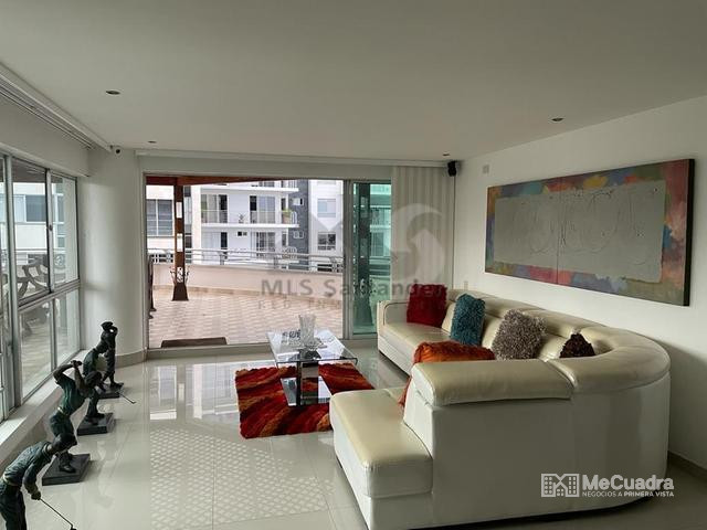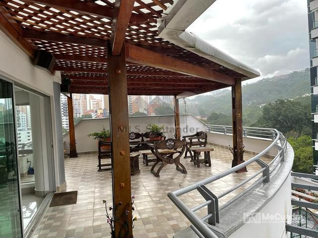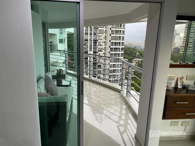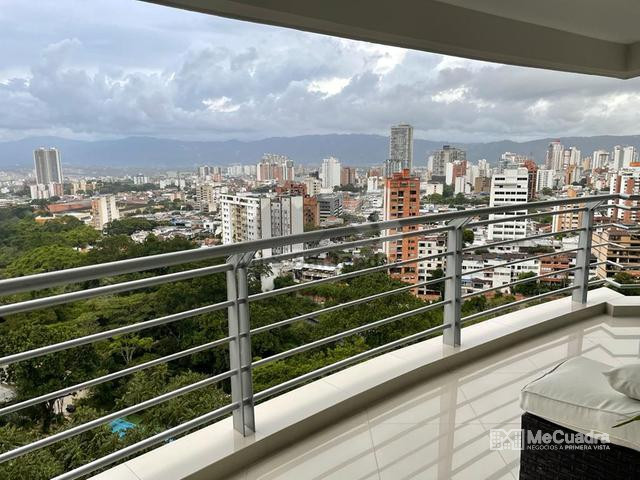 Apartamento con vista 180° a la ciudad, amplio e iluminado. Sala de estar con ventanales de piso a techo con vista a la ciudad, terraza amplia con vista al norte, oriente y occidente de la ciudad, cocina abierta tipo americana, zona de ropas independiente, baño para visitas, salon comedor. 3 habitaciones cada una con baño privado. Balcon con vista a la ciudad. Cuarto util en el mismo nivel del apartamento, parqueadero doble, cuarto de deposito.