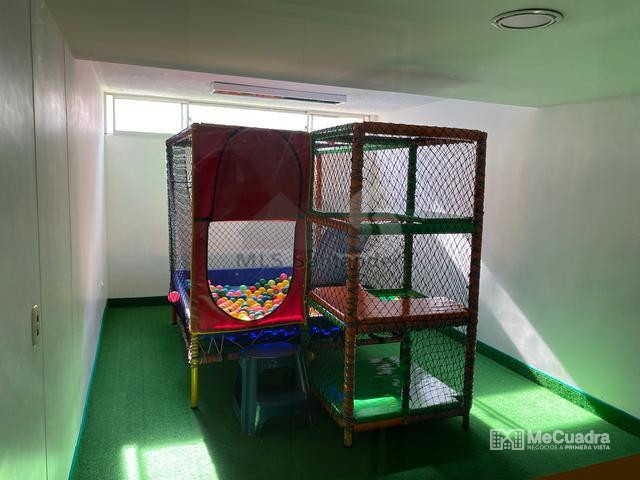 Area de 76.13 metros, cuenta con tres alcobas, dos baños, tres closet, cocina integral, sala comedor, zona de ropas, hall de tv, balcón, parqueadero, locker, ascensor y zonas comunes como: salón social, gimnasio, sauna, piscina, zona bbq y zona infantil.