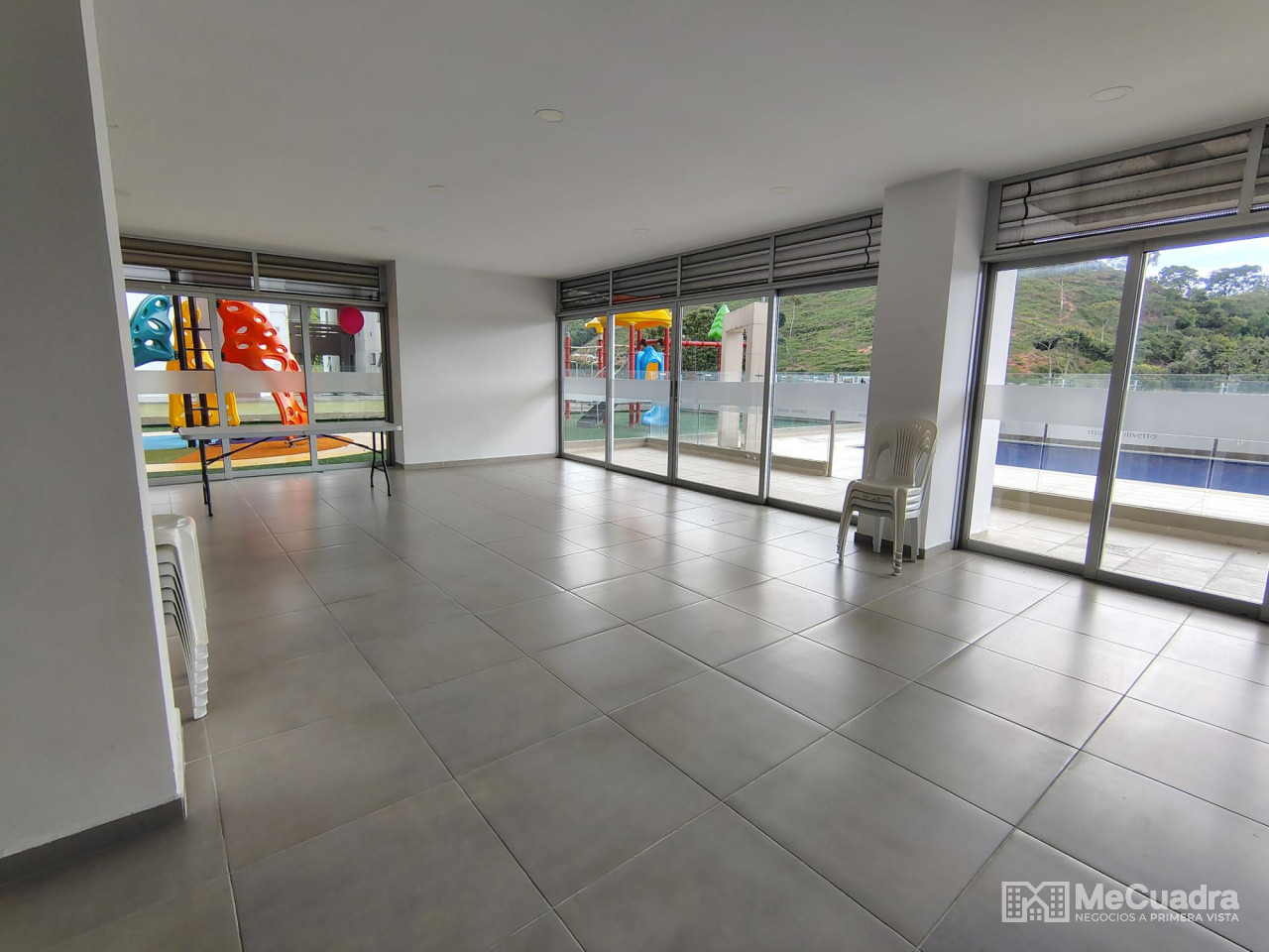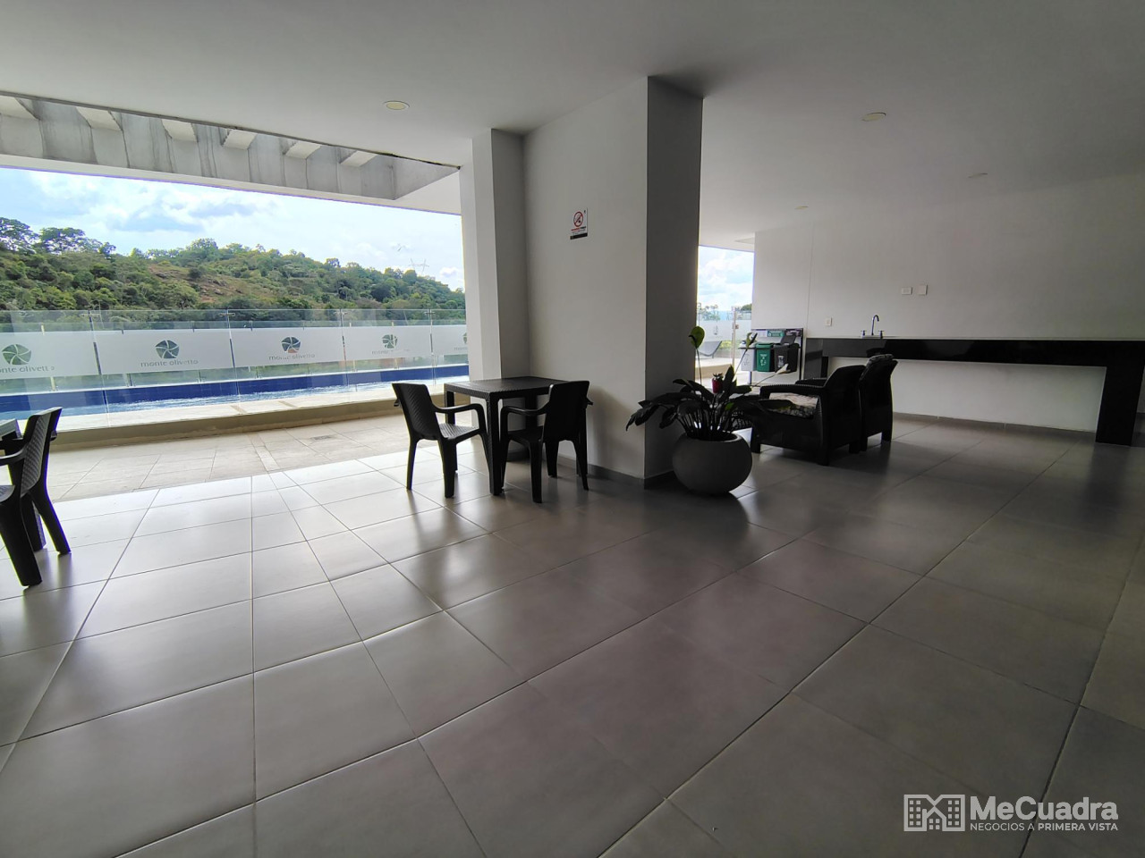 Apartamento de un área de 94.43 metros, que consta de: 3 alcobas con closet, alcoba principal con baño privado, baño auxiliar, sala comedor, balcón, hall tv o estudio, cocina integral con barra tipo americana, amplia zona de ropa, parqueadero no. 20. Zona social.