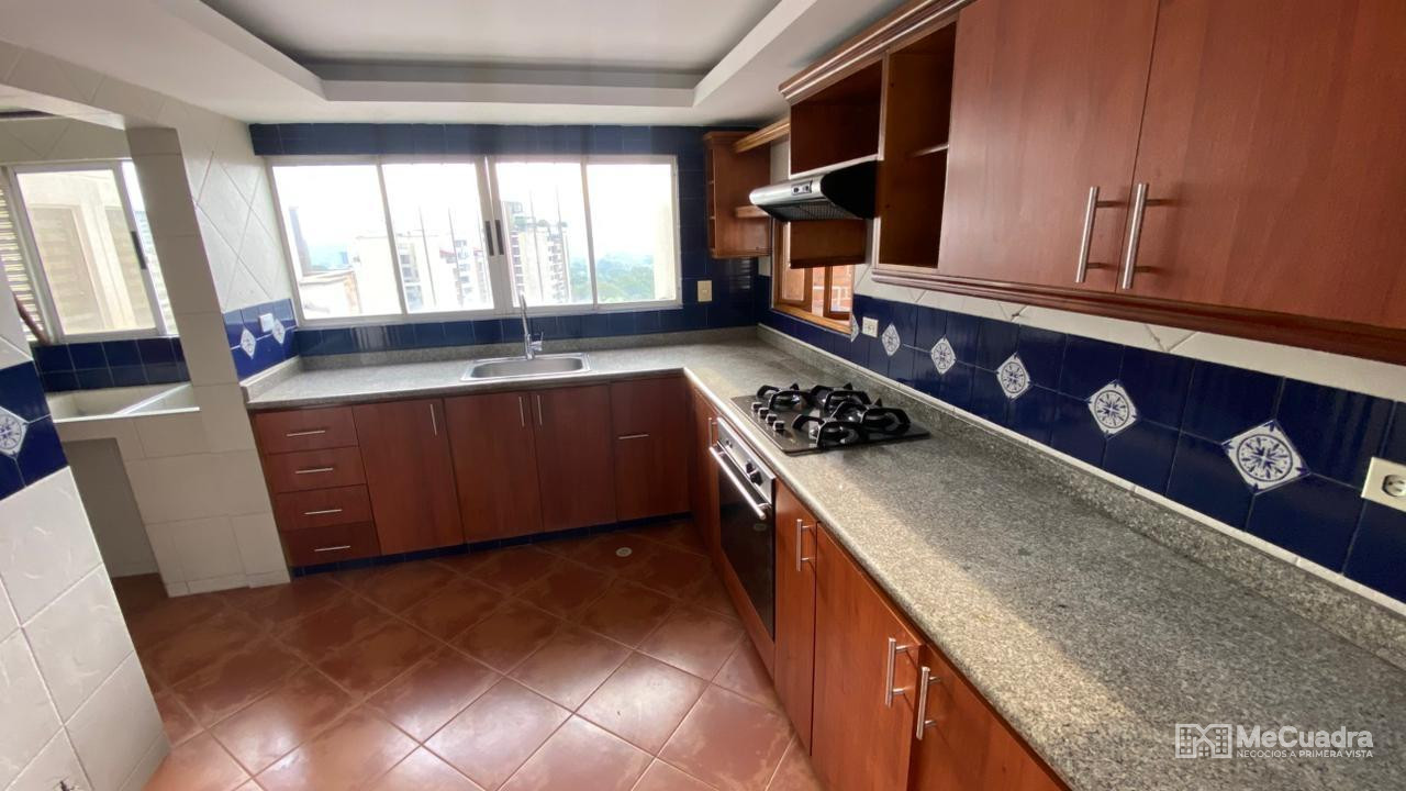En venta excelente penthouse, con un área de gran amplitud distribuida en 2 niveles asi: entrada por el segundo nivel en donde encontramos una amplia sala y comedor, un baño social, cocina integral, zona de ropas, despensa y habitación de servicio con baño, ademas de una terraza amplia con vista al norte, adecuada con bbq. En el primer nivel encontramos un estudio con balcón, la habitacion principal con walking closet, y baño con jacuzzi. Dos habitaciones auxiliares, un baño social y un hall de tv. Cuenta con 2 parqueaderos simultaneos en sotano.