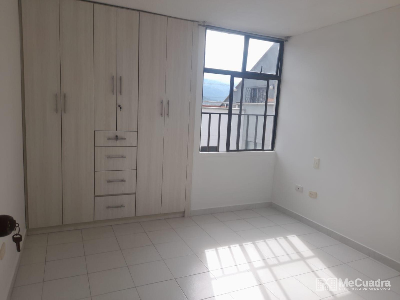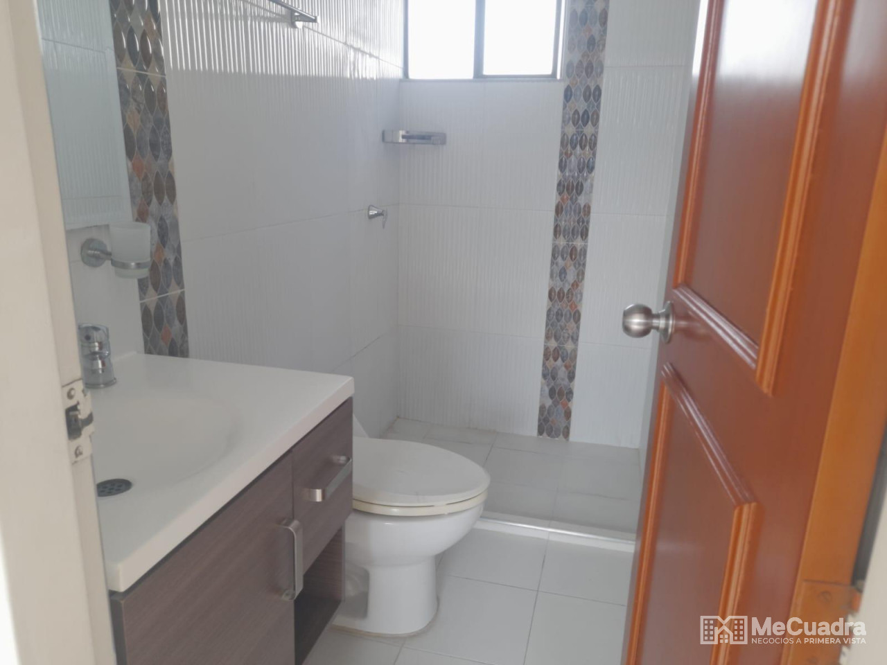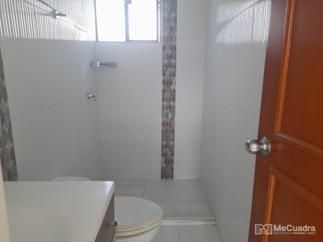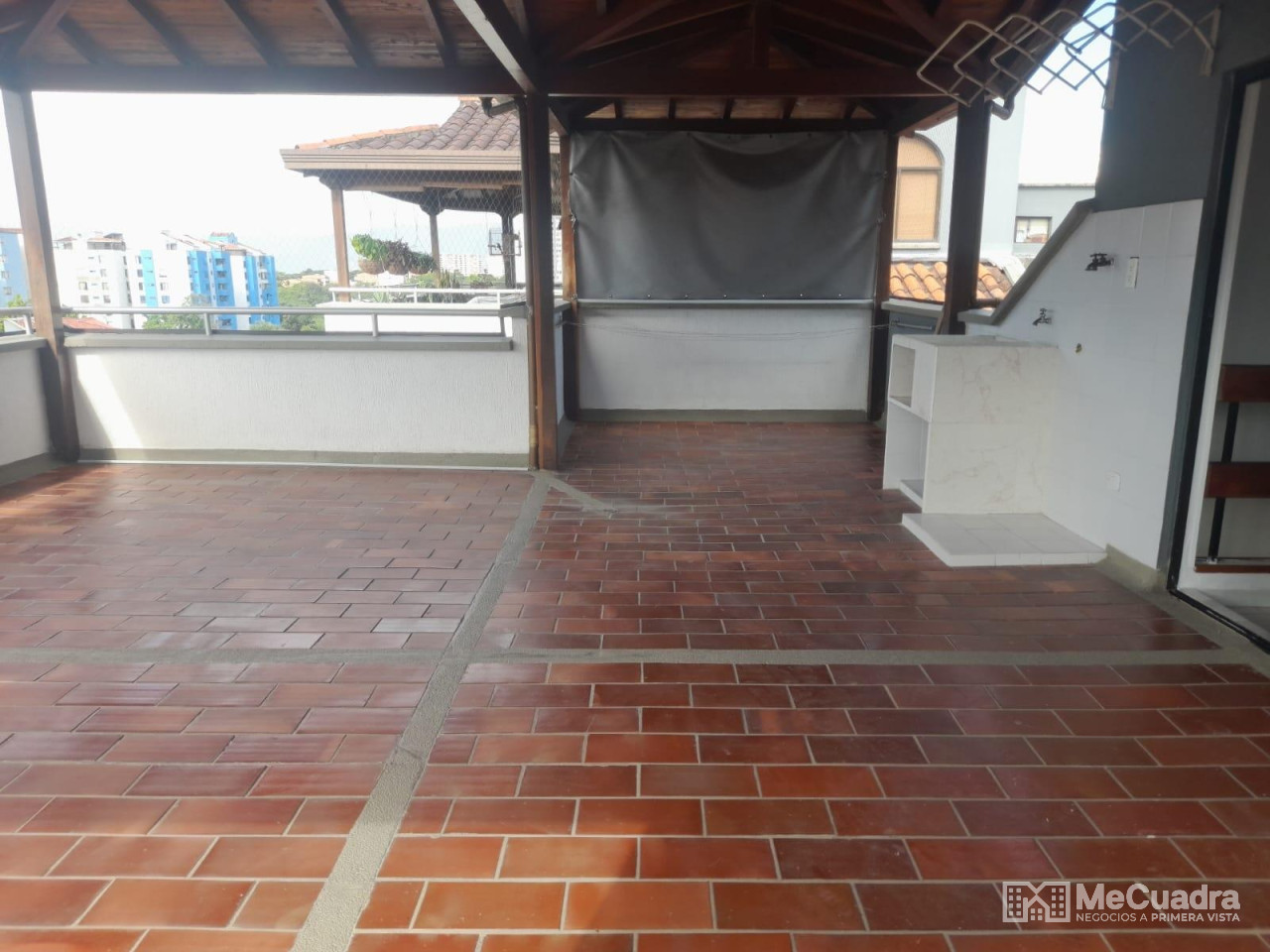 Duplex, exterior ubicado en el quinto piso, área : 96.23 metros cuadrados. Primer nivel : hall de recibo, sala comedor, cocina integral abierta, estudio o hall de tv, mirador, 3 habitaciones, la principal con baño, todas con closet y baño general. Gradas a segundo nivel: estudio, habitación pequeña, terraza con pérgola y zona de ropas.