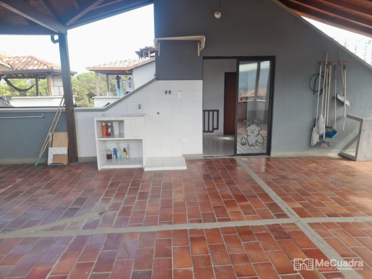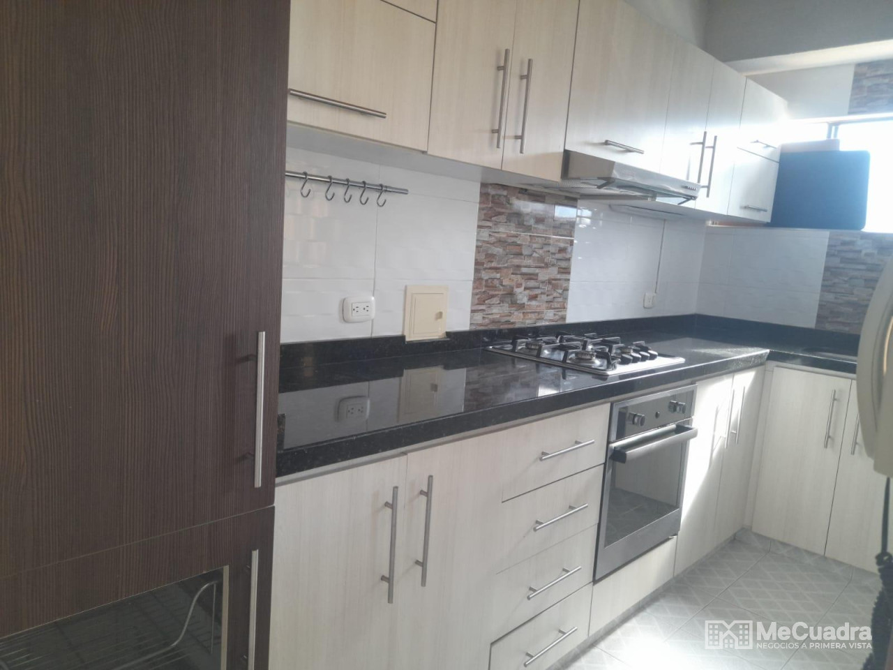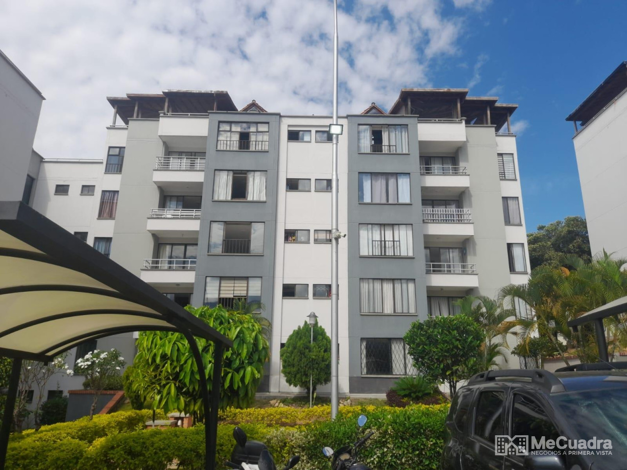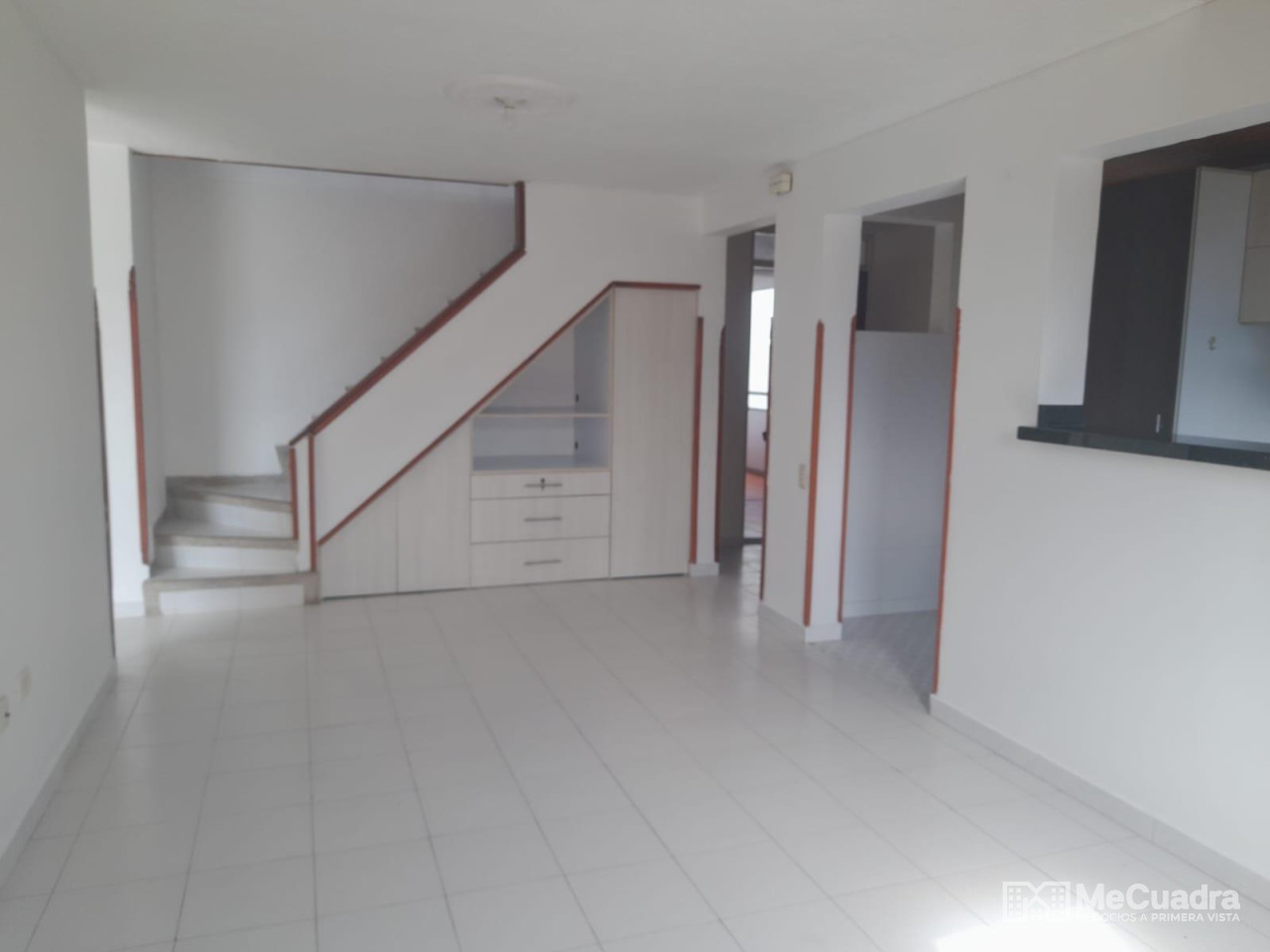 Duplex, exterior ubicado en el quinto piso, área : 96.23 metros cuadrados. Primer nivel : hall de recibo, sala comedor, cocina integral abierta, estudio o hall de tv, mirador, 3 habitaciones, la principal con baño, todas con closet y baño general. Gradas a segundo nivel: estudio, habitación pequeña, terraza con pérgola y zona de ropas.