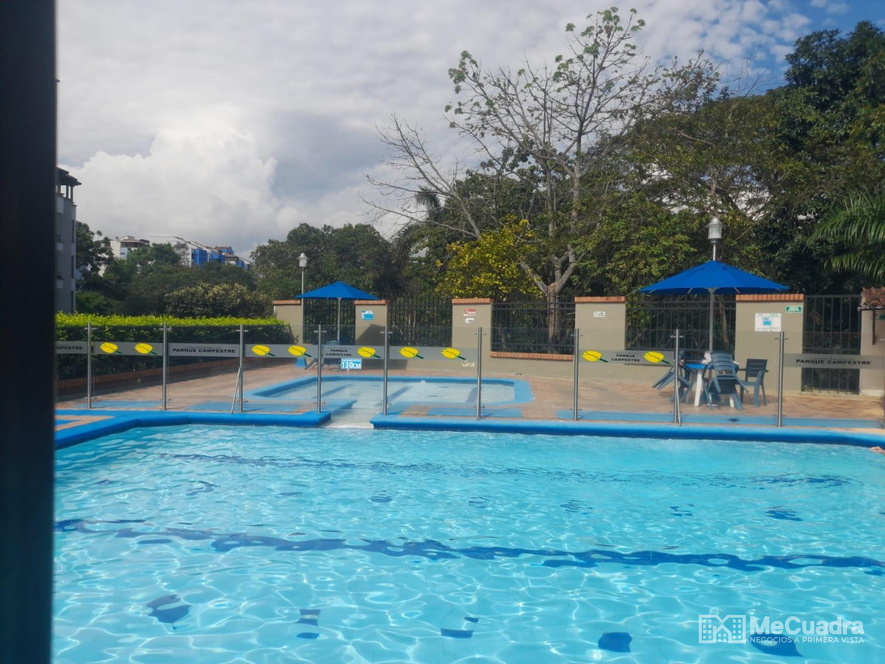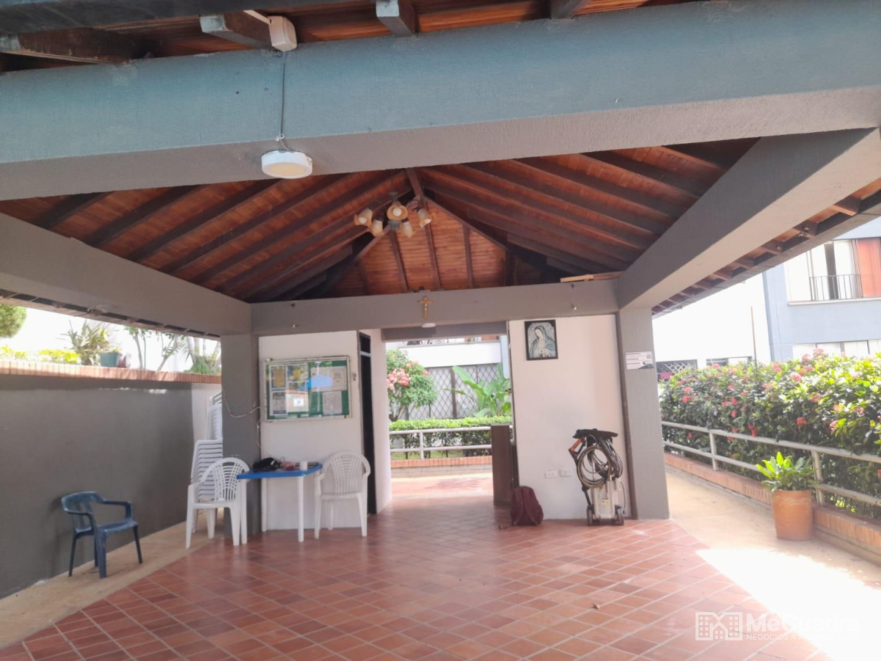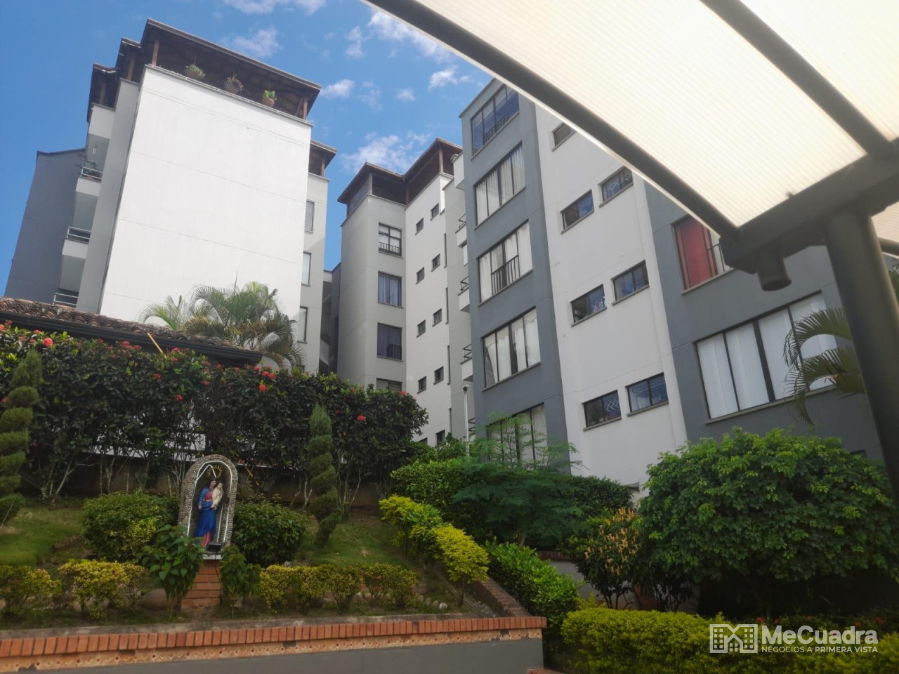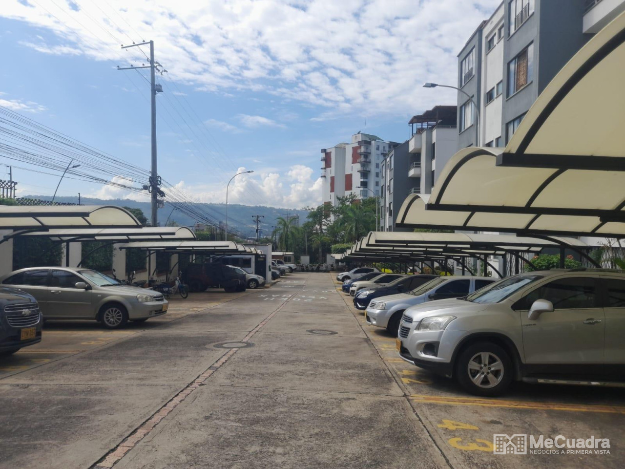 Duplex, exterior ubicado en el quinto piso, área : 96.23 metros cuadrados. Primer nivel : hall de recibo, sala comedor, cocina integral abierta, estudio o hall de tv, mirador, 3 habitaciones, la principal con baño, todas con closet y baño general. Gradas a segundo nivel: estudio, habitación pequeña, terraza con pérgola y zona de ropas.