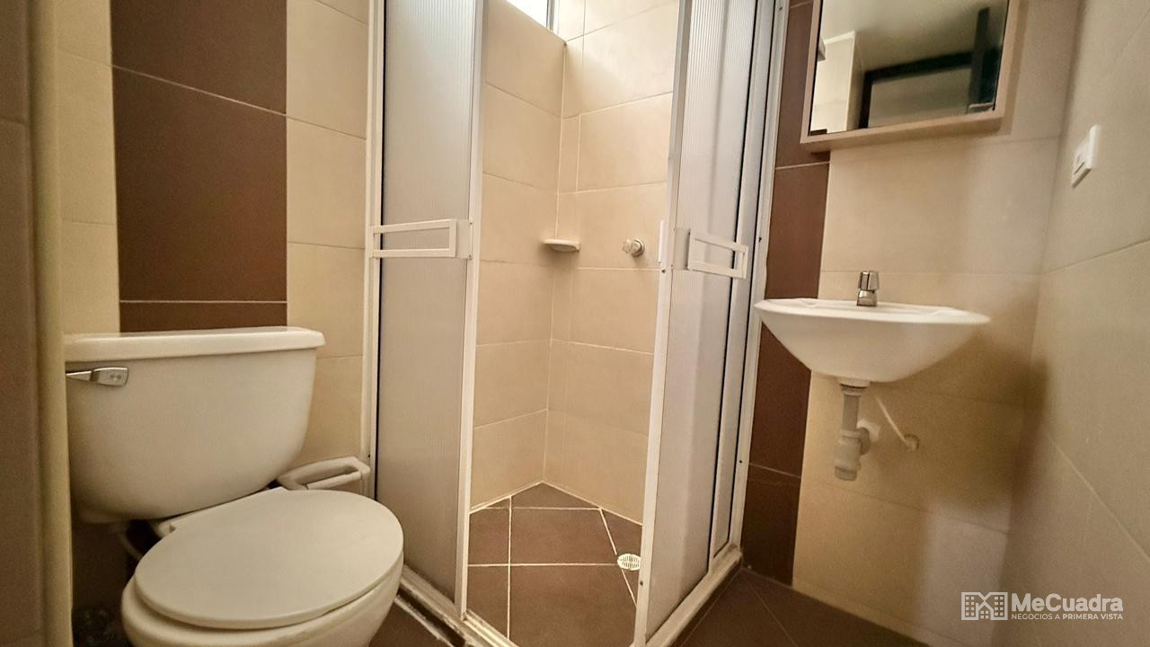 El apartamento se encuentra ubicado en el segundo piso del edificio sur de san fermin 2, cuenta con 2 habitaciones una de ellas con baño privado y adicional un baño auxiliar, cocina integral, zona de ropas y sala-comedor, parqueadero para carro, no cuenta con ascensor. El conjunto cuenta con piscina para adultos y piscina para niños, salon social, cancha multiple, gimnasio.