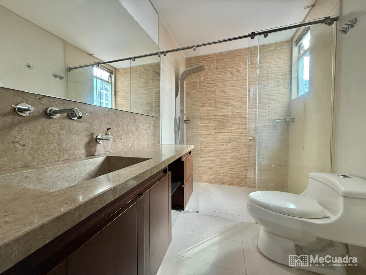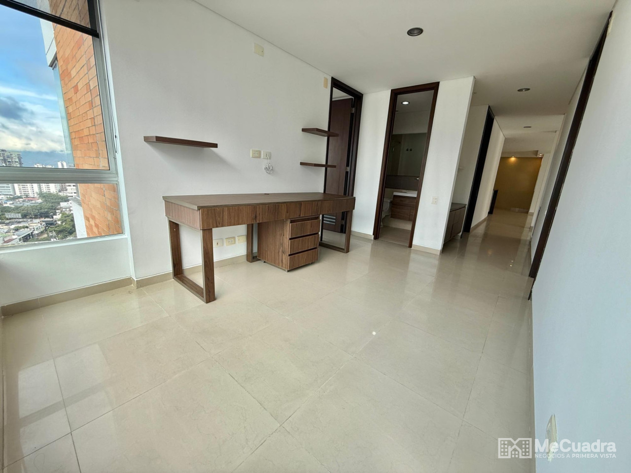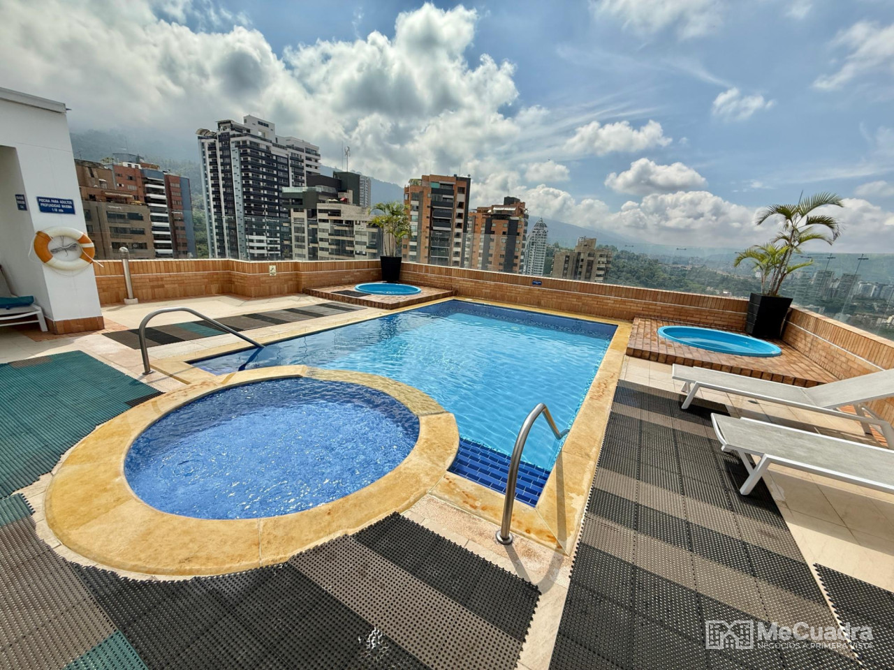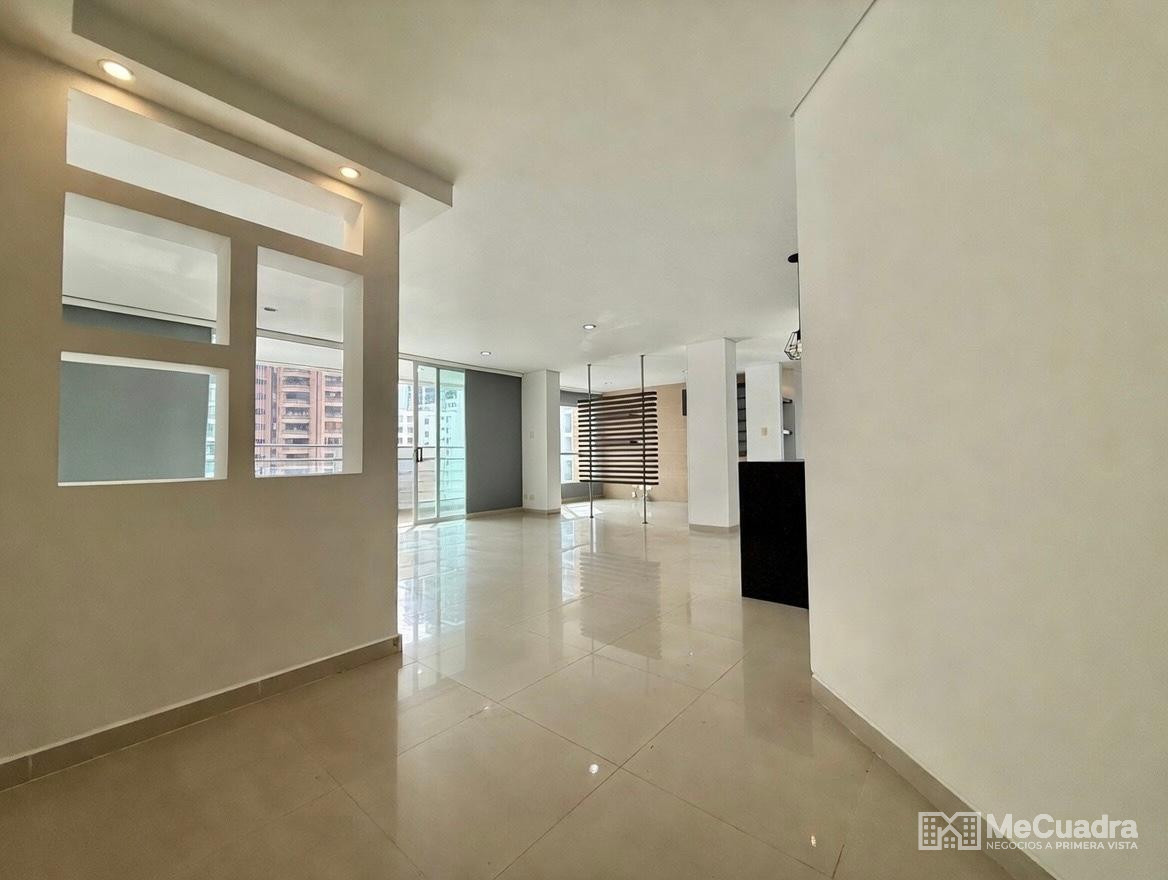 Amplio apartamento con sala, comedor, estudio y estar de tv, gran balcón, cocina integral con zona de ropas y cuarto de servicio o labores. Alcoba principal con baño, dos auxiliares con baño auxiliar y un tercer baño completo ubicado a la entrada del apartamento que funciona para visitantes y para el servicio. Tiene 2 parqueaderos y un amplio locker.