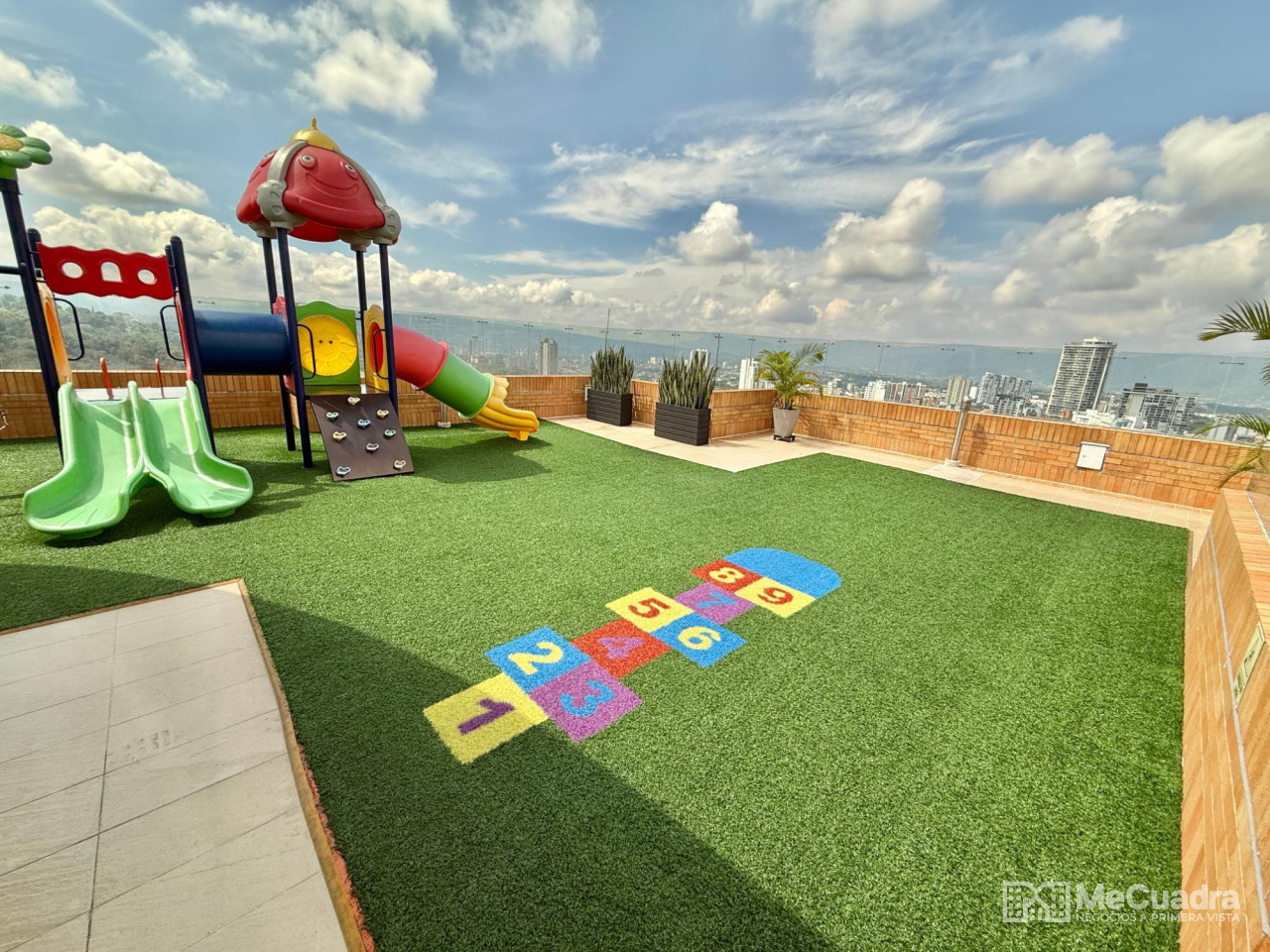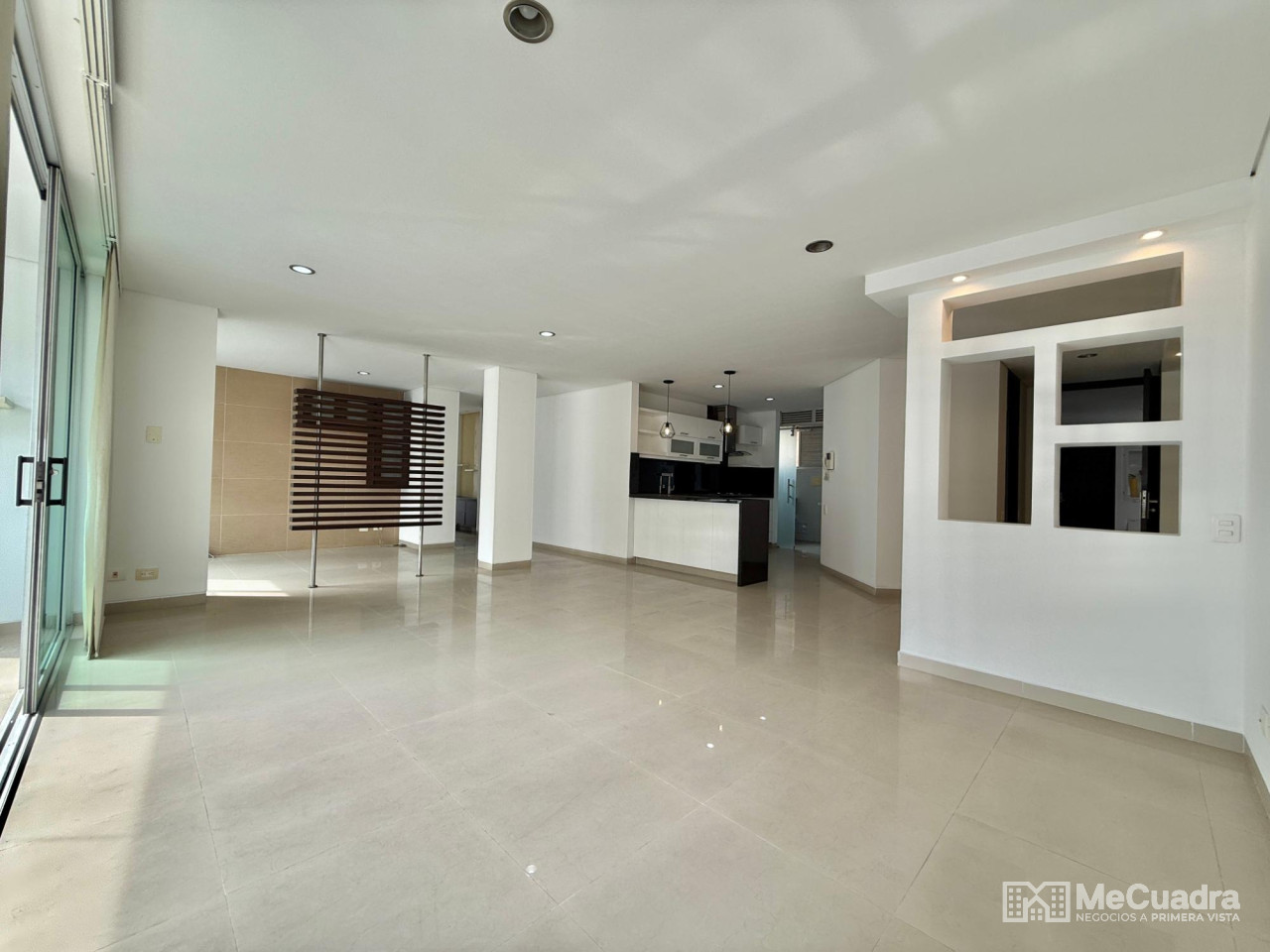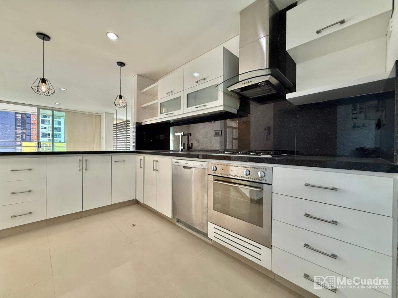 Amplio apartamento con sala, comedor, estudio y estar de tv, gran balcón, cocina integral con zona de ropas y cuarto de servicio o labores. Alcoba principal con baño, dos auxiliares con baño auxiliar y un tercer baño completo ubicado a la entrada del apartamento que funciona para visitantes y para el servicio. Tiene 2 parqueaderos y un amplio locker.