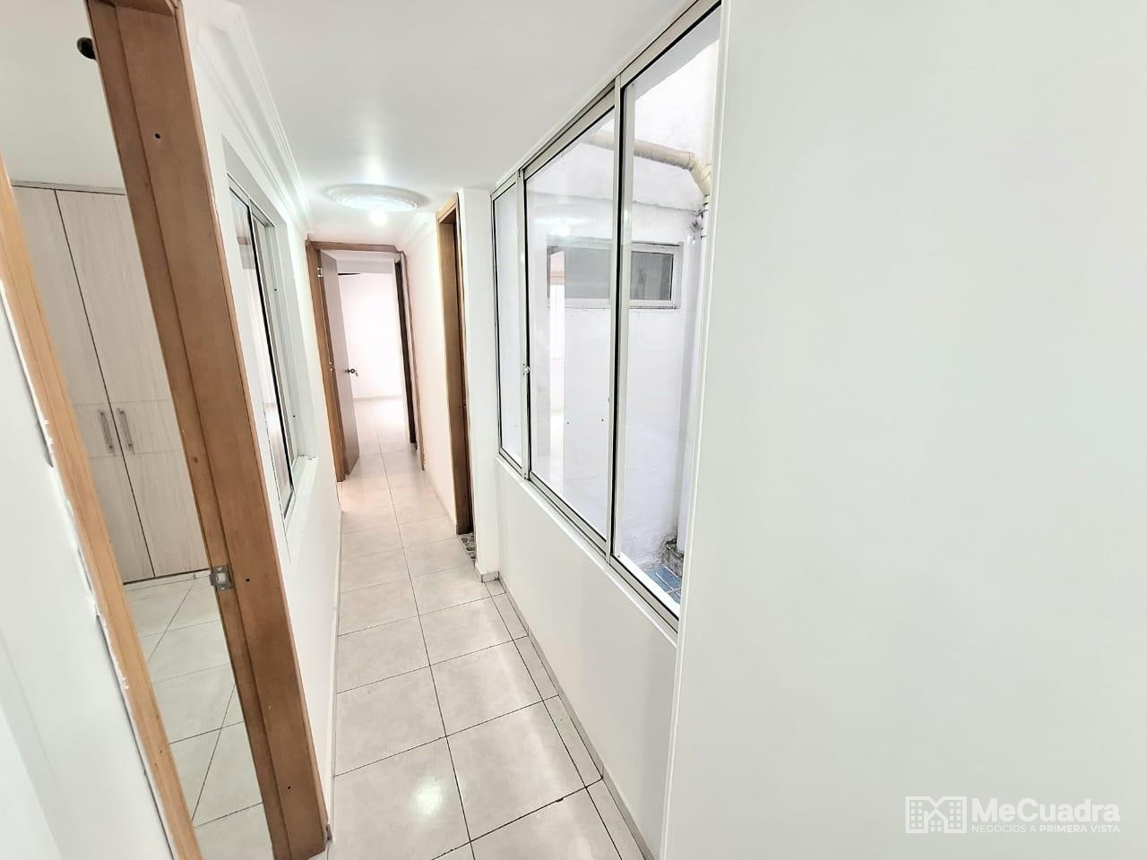 Al ingreso se encuentra su sala comedor con closet de almacenamiento, balcón exterior con vista hacia la calle, detrás de la sala comedor esta la cocina que es integral y al lado la zona de ropas, por el pasillo esta el baño auxiliar con ducha y habitaciones con closet, la habitación principal cuenta con baño, el apartamento tiene pisos en cerámica y cuenta con parqueadero de carro tipo garaje, el edificio no tiene vigilancia ni servicio de aseo en sus áreas comunes