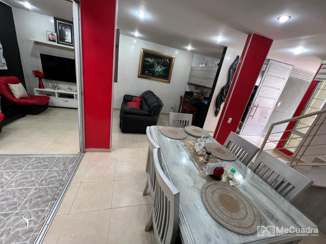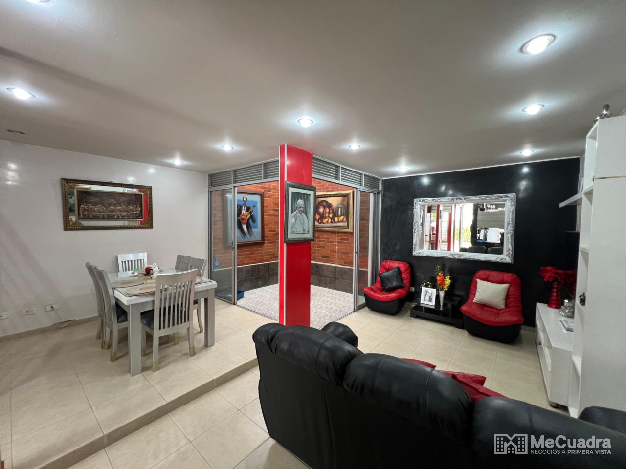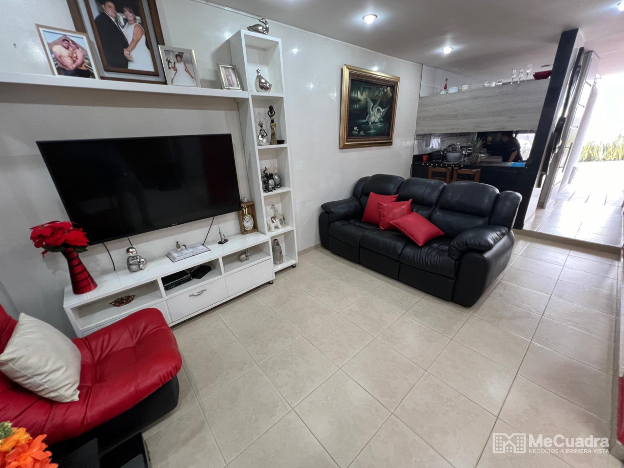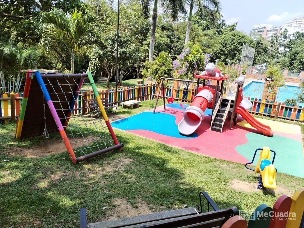 Accedemos junto al garaje cubierto. En el primer nivel tenemos: cocina con zona de ropas, sala, comedor, baño de visitas y un patio cubierto con domo de corredera integrado a la zona social del apartamento. En el segundo nivel tenemos: estar de tv, alcoba principal con baño y balcón, 2 alcobas auxiliares y un baño auxiliar.