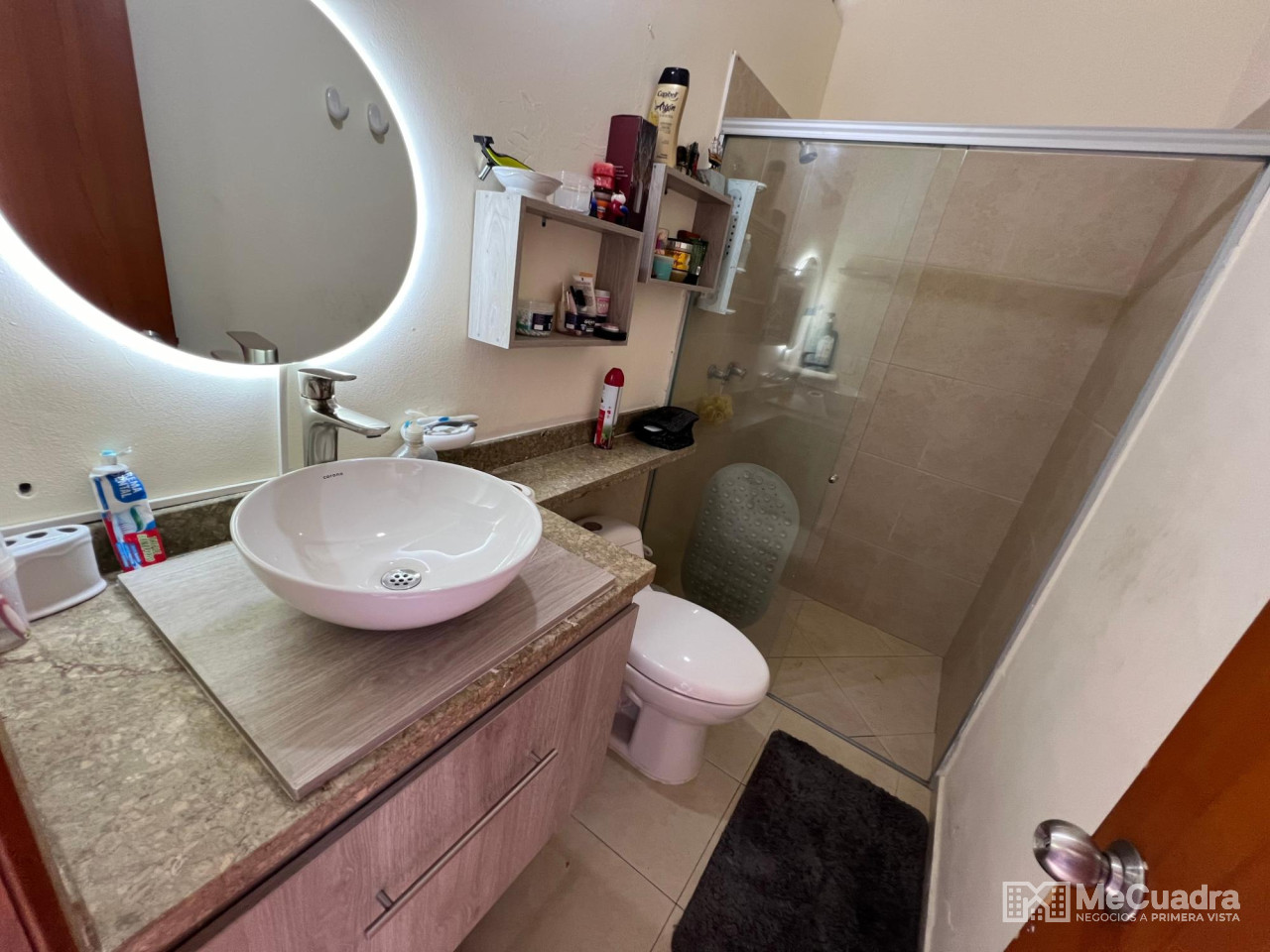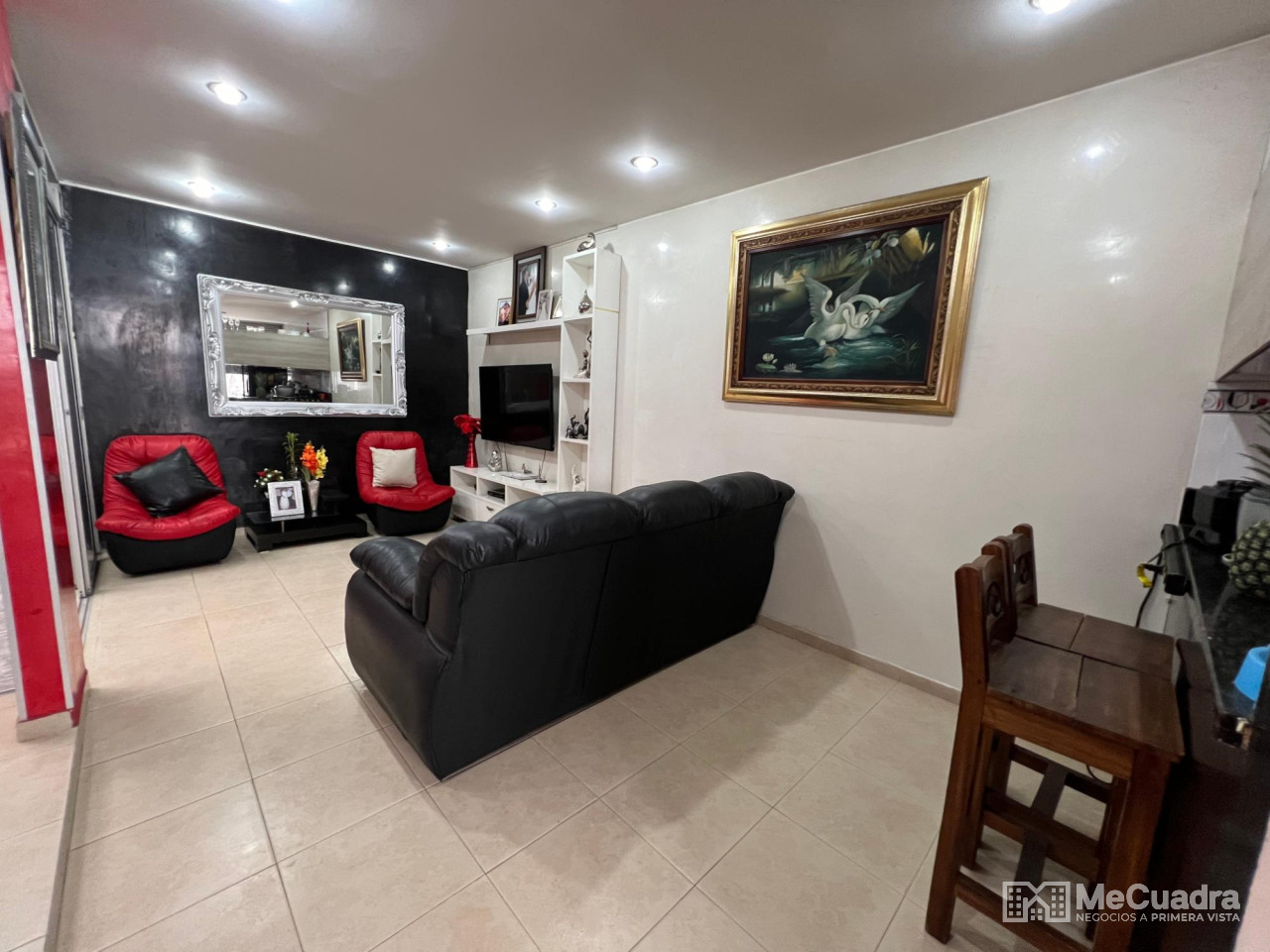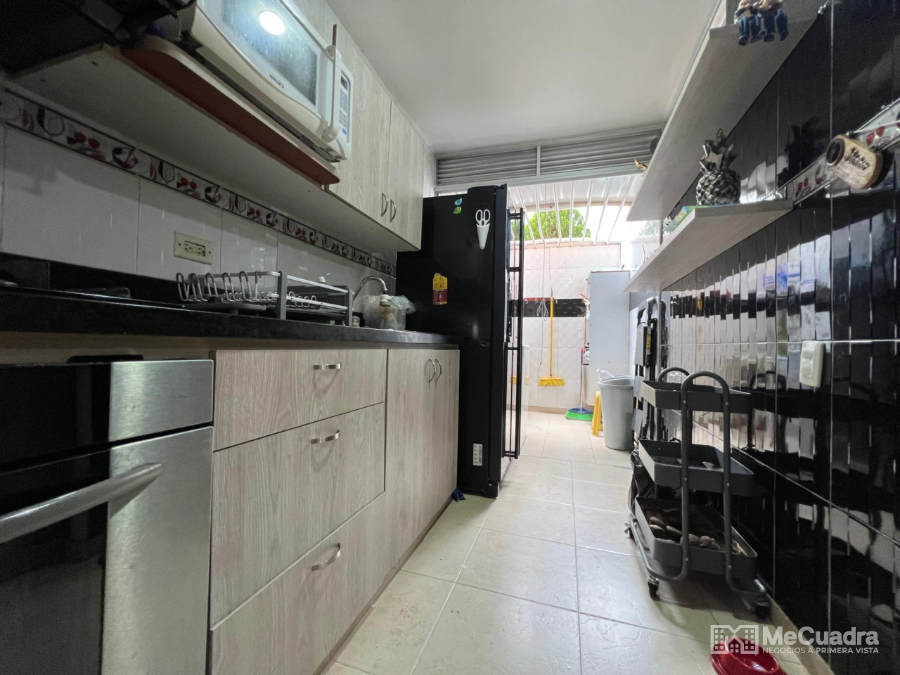 Accedemos junto al garaje cubierto. En el primer nivel tenemos: cocina con zona de ropas, sala, comedor, baño de visitas y un patio cubierto con domo de corredera integrado a la zona social del apartamento. En el segundo nivel tenemos: estar de tv, alcoba principal con baño y balcón, 2 alcobas auxiliares y un baño auxiliar.