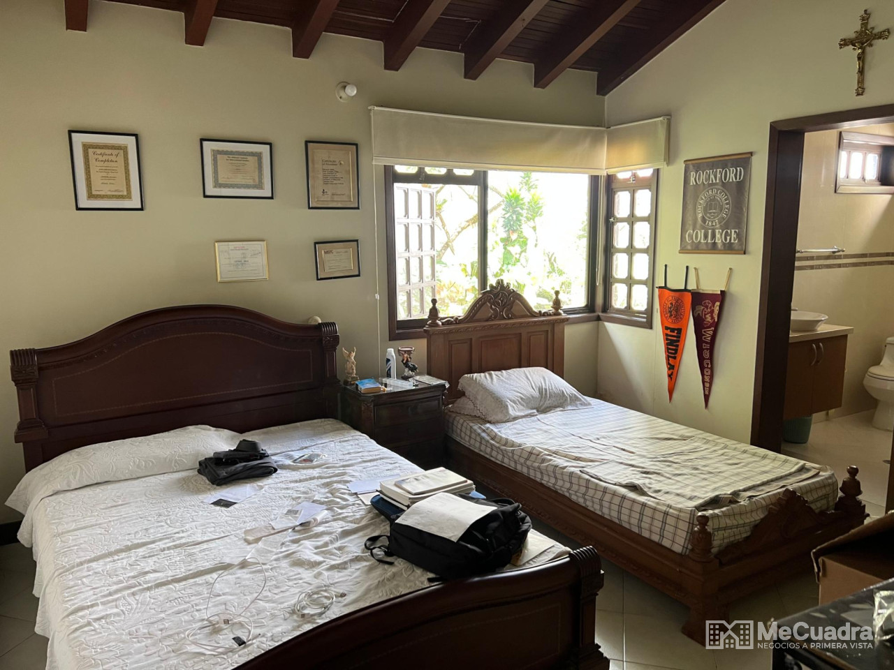 Excelente casa, ubicada en una calle tranquila y sin salida, lejos del tráfico y ruido, a solo 10 minutos caminando del centro comercial cabecera y de los parques. Con una linda vista panorámica hacia la cordillera oriental, amplios espacios y arquitectura colonial esta propiedad es única en bucaramanga. Esta casona es una de las propiedades más exclusivas de bucaramanga, diseñada con una elegancia arquitectónica excepcional. Construida sobre un terreno de 730 metros cuadrados, la casa cuenta con 4 alcobas todas con baño privado y ventanales con vista hacia los jardines, sala familiar para tv, zona social, zona de servicios con 2 habitaciones, una con baño y 2 baños auxiliares. Una amplia escalera de madera, que lleva hacia la sala y el jardín principal, es iluminada por lindas lámparas de cristal que cuelgan del imponente techo machimbrado. La sala además de destacarse por su generoso espacio, integra a través de su ventanal una sala de estar con vista a la piscina, solarium, sauna.