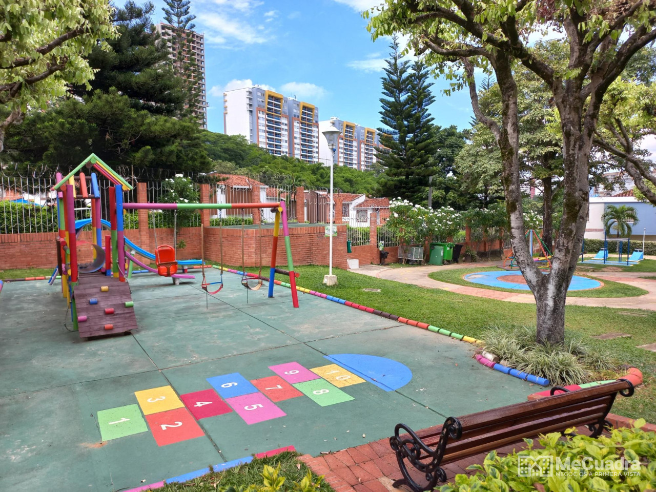 La casa consta de 2 pisos así: piso 1: garaje, baño de visitas, sala-comedor, patio, cocina, zona de ropas y alcoba de servicio con baño. Piso 2: 3 alcobas, la principal con baño, un baño auxiliar, hall televisión, una terraza pequeña cubierta. El conjunto está formado por 122 casas cada casa con un garaje y cuenta además con 22 parqueaderos para visitantes, 2 piscinas, salón social, dos canchas básquetbol y múltiple. Turco, bq, gimnasio al aire libre, juegos infantiles y zonas verdes.
