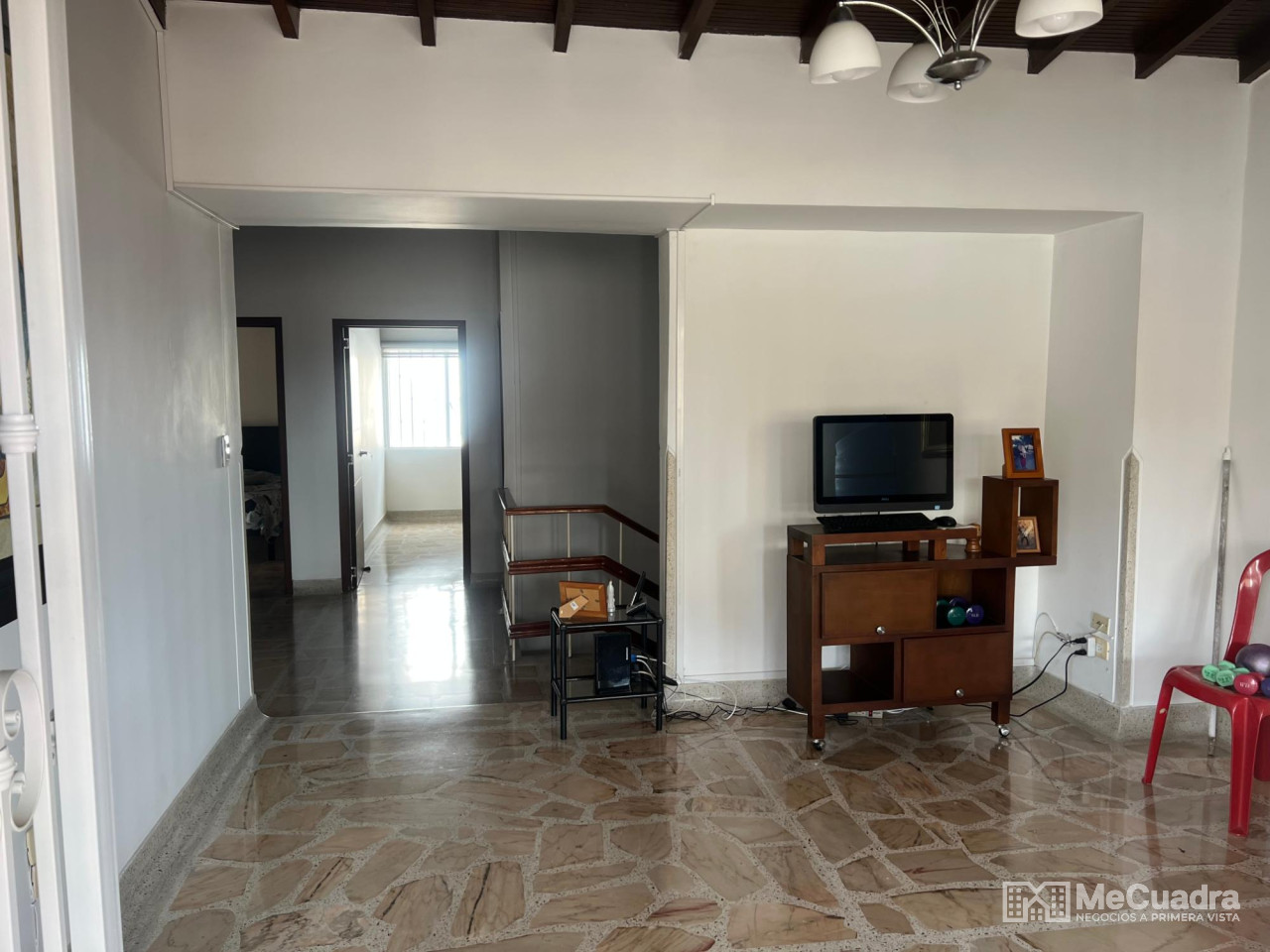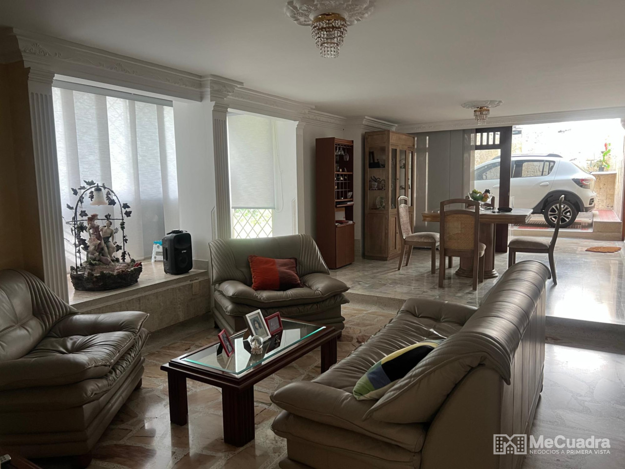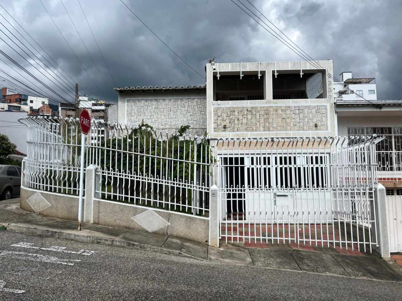Casa esquinera de dos niveles. Primer piso: sala, comedor, oratorio, baño social, jardín, parqueadero por la calle y carrera, altillo con habitación y baño, zona de ropas, bbq, sala auxiliar. Segundo piso: 3 habitaciones, la principal con vestier y tina. Estudio, sala de televisión, balcón, hall de habitaciones y baño social.