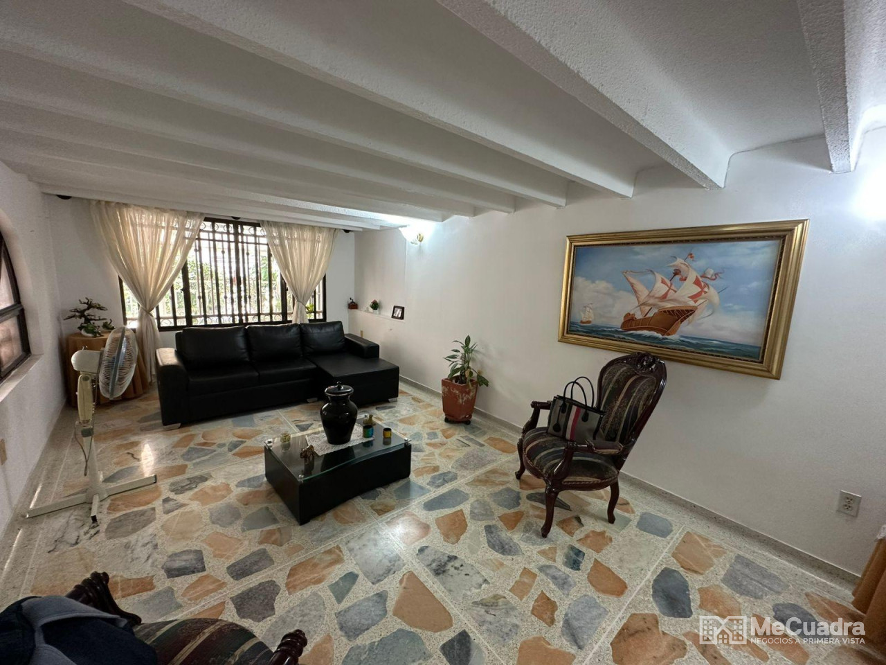 Casa de dos pisos: primer piso consta de antejardin, garaje, sala, escalera,comedor ,baño auxiliar, cocina, alcoba de servicio con baño y patio de ropas con lavadero. 2 piso: cuatro alcobas una de ellas con estudio todas con closet, principal con baño, baño auxiliar