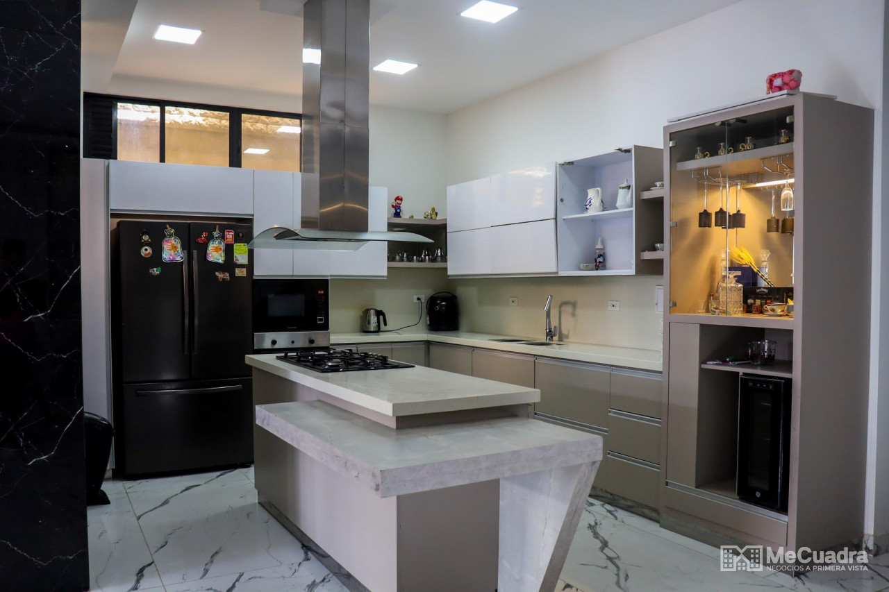 Desde el momento en que cruzas la gran puerta de entrada, esta casa te recibe con su imponente doble altura y un ambiente lleno de luz y amplitud. En el primer piso encuentras la sala principal, una cocina abierta de diseño moderno, zona de ropas, habitación auxiliar y el cuarto de servicio; todo pensado para integrar comodidad y estilo en un mismo espacio, en el segundo piso, las alcobas privadas ofrecen descanso y confort, destacándose la suite principal: un verdadero refugio con walk-in closet y un baño de lujo, diseñado para vivir con la máxima comodidad. Y el tercer piso es, sin duda, el corazón social de la casa. Una terraza espectacular con vista panorámica a la ciudad, un jacuzzi tipo cascada, sauna, espacio de bbq con cocina tipo bar y una habitación con baño auxiliar para recibir a familia e invitados. Un nivel creado para disfrutar, relajarse y compartir momentos inolvidables. Además, la casa cuenta con doble parqueadero privado y un sistema de seguridad con circuito cerrado, que garantizan tranquilidad y respaldo. Más que una propiedad, es un hogar donde cada piso ofrece una experiencia única, combinando lujo, modernidad y calidez en uno de los sectores más exclusivos de bucaramanga.”