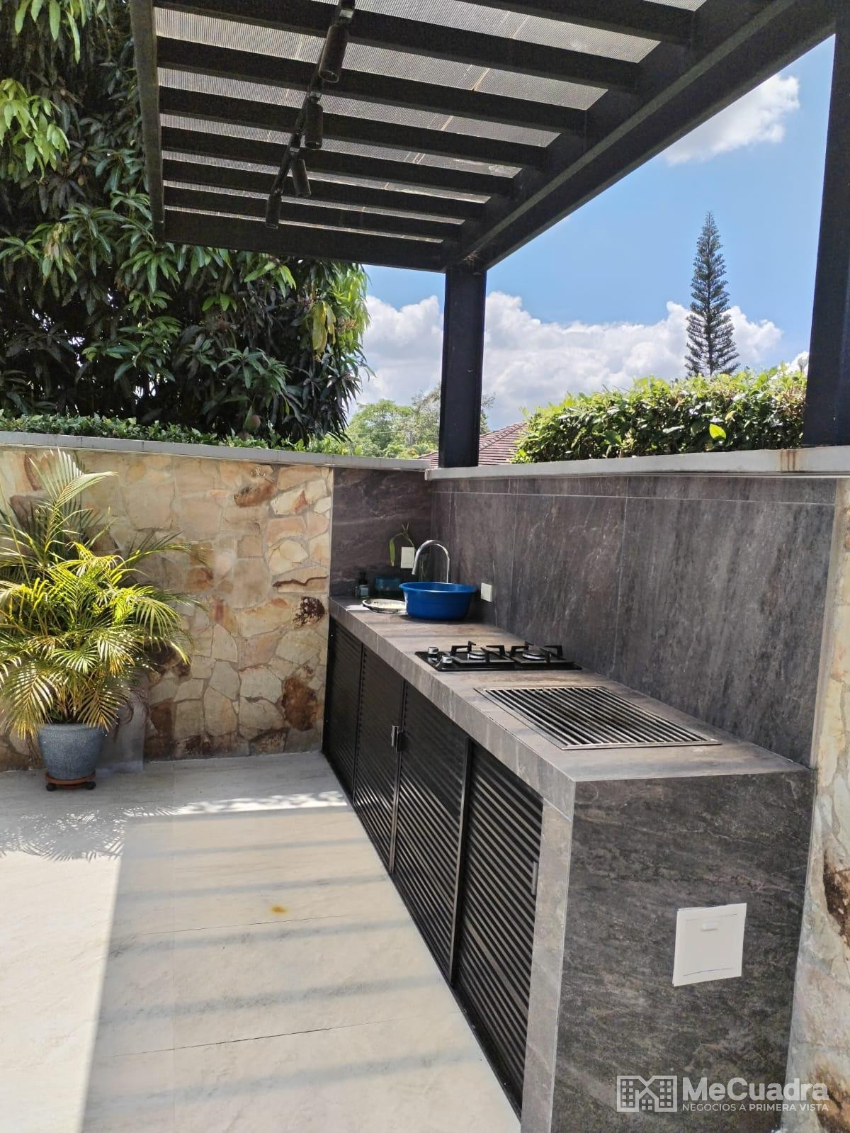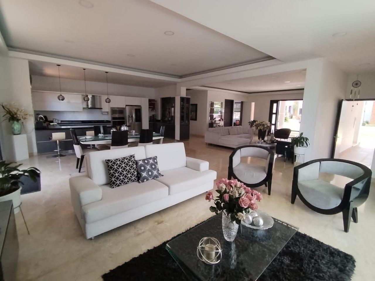 Consta de 4 alcobas, todas con closets y baño, baño auxiliar, sala-comedor, cocina integral, estudio, zona de ropas, 3 balcones, aire acondicionado, piscina, sauna, salon social, hidropiscina con cascada, bbq, jardines, parqueadero para seis carros.